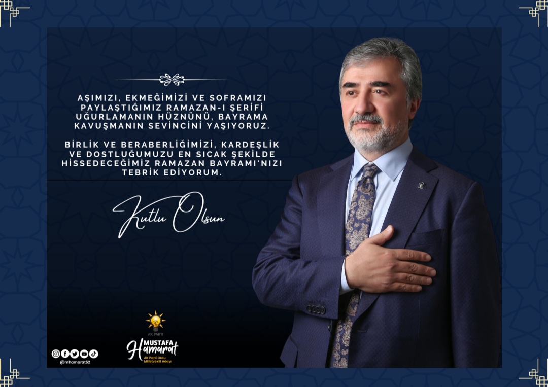AK Parti Ordu Milletvekili Adayı Mustafa Hamarat Ramazan Bayramı dolayısıyla bir mesaj yayınladı. Hamarat mesajında, “Başı rahmet, ortası mağfiret ve sonu bağışlanma olan Mübarek Ramazan ayının sonuna gelirken bayrama kavuşmanın mutluluğunu yaşıyoruz. Bayramın ülkemize huzur, sağlık ve mutluluk getirmesini diliyorum” dedi.